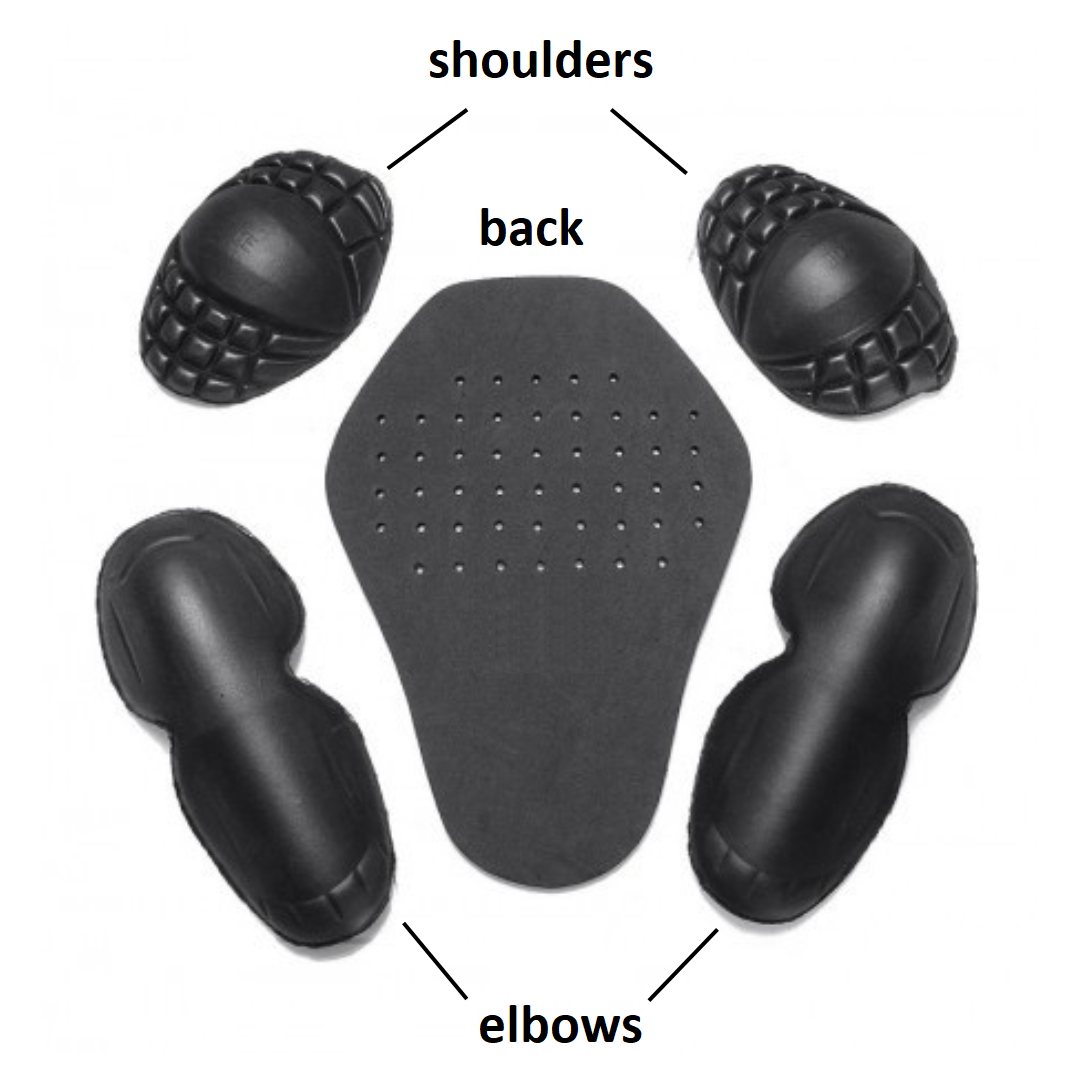 - Protections amovibles certifiées CE sur les épaules, les coudes et le dos, protection de niveau 1, en matériau moulé PU antichoc, norme EN17092.